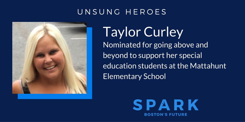 My name is Taylor Curley. I am a Special Education teacher in the City of Boston. I currently teach 3- and 4-year-old students with special needs at the Mattahunt Elementary School in Mattapan. The Mattahunt is a low income, low performing school facing many challenges. The students are often suffering through poverty, hunger, and trauma. My students struggle physically and emotionally as well as academically. They suffer from a range of disabilities, from Autism to Down’s Syndrome and more.