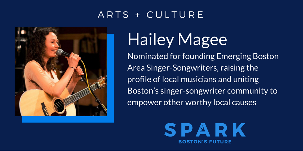 My name is Hailey Magee. I'm a musician, a community-builder, and an advocate. I’m the founder and director of Emerging Boston Area Singer-Songwriters (EBASS), a 700-member community-based organization that provides a space for musicians and music-lovers alike to celebrate homegrown local talent, the beauty of unfiltered artistic expression, and the healing power of community. I am also the founder and owner of Talisman Music Group, a local artist consulting business that elevates homegrown artists to their maximum potential.