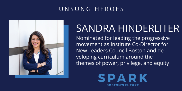 Outside of work, Sandra is proud to serve on the board of New Leaders Council where she is co-chair of the flagship six-month institute where progressives develop their leadership. She also spends time volunteering at a Dorchester homeless shelter and engaging with formerly incarcerated young men who are working towards becoming Personal Trainers.
