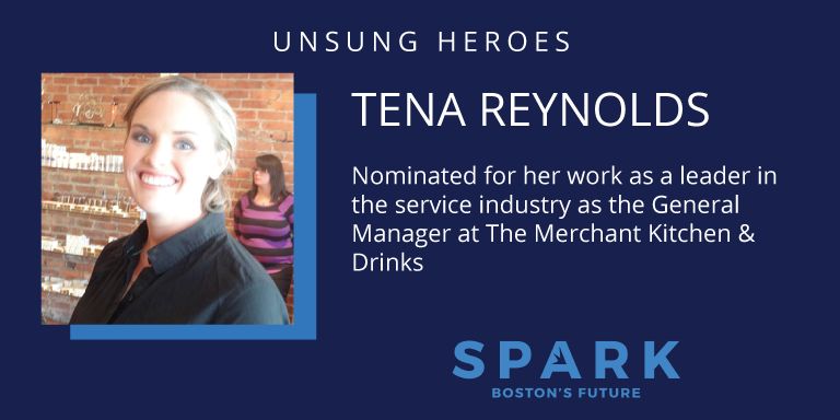 Tena Reynolds works at The Merchant Kitchen and Drinks where she has been the General Manager since it's opening in 2014. She has worked in the food and beverage industry since 2004 getting her start at the Chart House and then moving over to Boston Harbor Cruises in 2009.