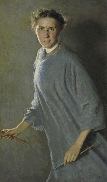 These creative professionals felt a sense of purpose and joy in their work – as Margaret Foster Richardson vividly conveys in her self-portrait, A Motion Picture (1912). Richardson depicted herself mid-step while hurrying past in her painting smock, brushes gripped in both hands. She is both a modern woman and a busy artist, beaming with self-confidence.