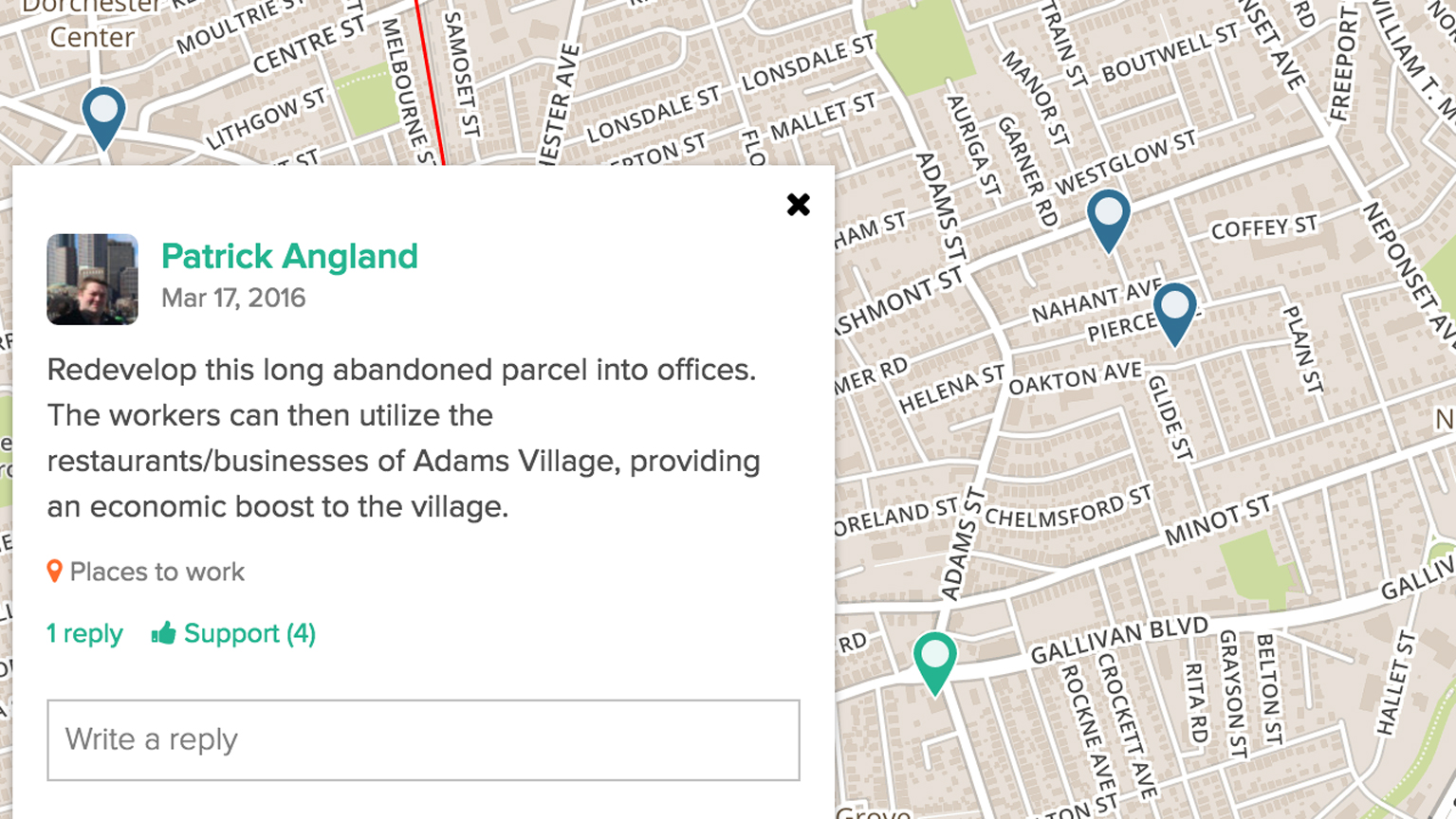 - “Bringing jobs closer to where people live will promote a healthier lifestyle with more people biking or walking to work.” (Karrie, Mattapan)