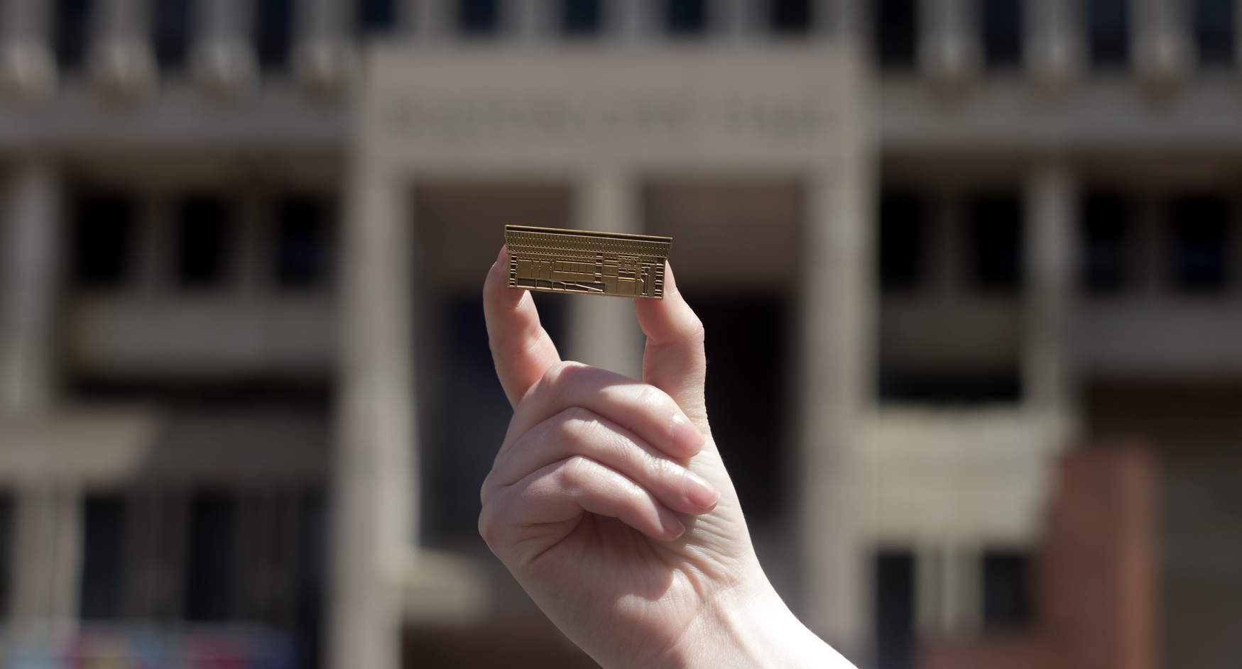 With Preservation Month underway, we wanted to help celebrate. Our design staff worked with the Landmarks Commission to create some new swag for City Hall’s 50th birthday. We also reprinted last year’s award-winning designs for Preservation Month posters, bookmarks, and tote bags. You can check out our new pin below: