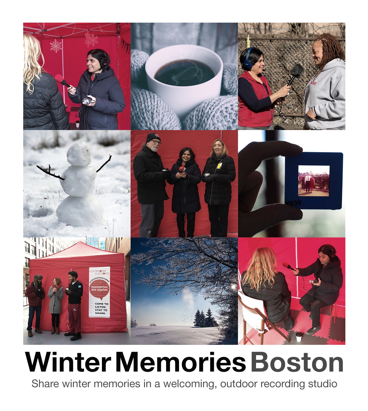 Winter Memories: Boston, a storytelling and sharing project, invites neighbors to share and listen to winter memories in a warm, mobile recording studio. The project easily creates storytelling areas in parks and community centers. At four events throughout the city, people will enter an accessible tent, enjoy a warm beverage, record a winter memory, and have the opportunity to listen to previously recorded memories.