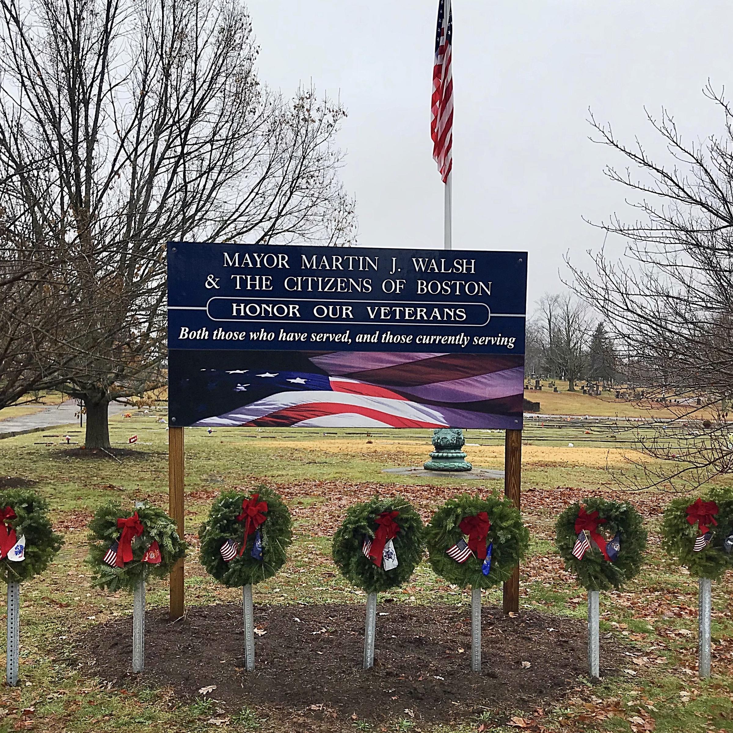 "At Boston Parks and Recreation, we wanted to go beyond just celebrating Veterans Day in the fall and Memorial Day in the spring," said Tom Sullivan, head of the Parks Cemeteries division. "We are grateful for the opportunity to express our appreciation during the hustle and bustle of the holiday season, while also beautifying Boston's cemeteries and burying grounds."