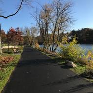 Mayor Martin J. Walsh, Boston Parks and Recreation Commissioner Ryan Woods, residents, and park advocates unveil renovations around Jamaica Pond.