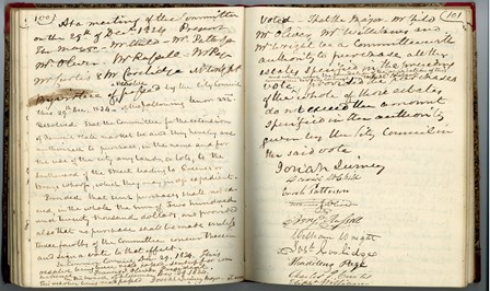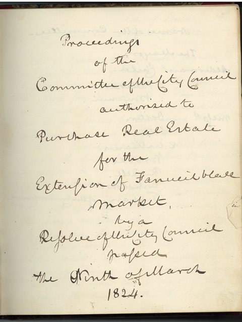Take a look at these images of minutes from the City Council Joint Committee on the Extension of Faneuil Hall Market. If you're interested in learning more about the extension of Faneuil Hall Market Place, you can view our Guide to the City Council Committee on the Extension of Faneuil Hall Market records.