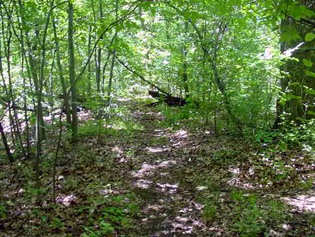 Bordered on the northwest by Woodhaven Street and on the southeast by a steep drop to the MBTA commuter line right-of-way, Woodhaven urban wild is a geologically rich pocket of land topped by a fairly healthy oak and hickory forest. This small natural area boasts at least five types of rock: Mattapan volcanic rock, Roxbury puddingstone, argyllite or mudstone, breccia, and basalt. Invasive species, such as green brier and European buckthorn, have begun to encroach on the northern section of the urban wild and in the southeastern section bordering the commuter rail right-of-way; however, the majority of the site is covered with white and red oaks. Ecologically, this urban wild is very valuable in that it not only provides a biologically and geologically diverse ecosystem, but also serves as a stepping stone between larger natural areas nearby. Gladeside Urban Wild and Almont Park, which contain large wooded outcrops, are both in close proximity. There are no established pathways through the site and the northeastern and southwestern sides are snuggly bordered by single family houses.