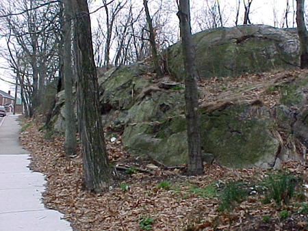 Willowwood Rock urban wild is a small parcel of land surrounded by housing to the south, north, and east and bordered by Willowwood Road to the west. A wooded mudstone outcrop lines the eastern boundary of the site while the remaining western section of the site is covered with meadow grasses. Mudstone, also called Cambridge argyllite, is normally found north of Boston as its name indicates. The presence of mudstone in this area is extremely unusual and seems to indicate that this area was once covered by water. In the more recent past, this area experienced extensive dumping of everything from household devices to abandoned cars. A chain-link fence erected along Willowwood Road provides the site with improved, but incomplete, protection from this type of abuse. Positioned in an area of almost continuous housing, Willowwood Rock urban wild has the potential of serving as an important area for passive recreation. Unlike many urban wilds that lie at the periphery of neighborhoods, Willowwood Rock is in the heart of a housing development.